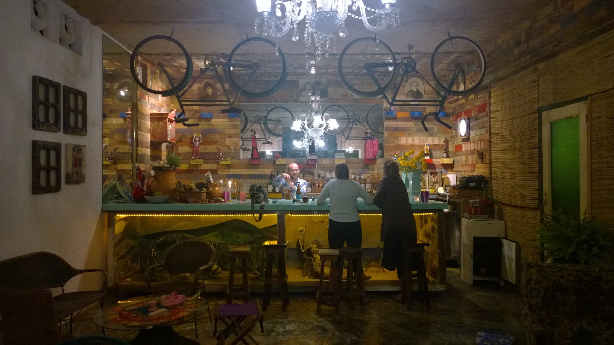 This place is a wonderful gem of a place. The decor is eclectic and creative. The staff is incredibly sweet. The dorm room walls are painted like a jungle and the bathroom walls are covered in painted fish. The only other inhabitants of my dorm are two lovey women, Amy and Ellie. The atmosphere is so trusting that Ellies iPad is sitting on a night table unguarded. Eventually we all ended up in the cantina that is attached to the hostel.