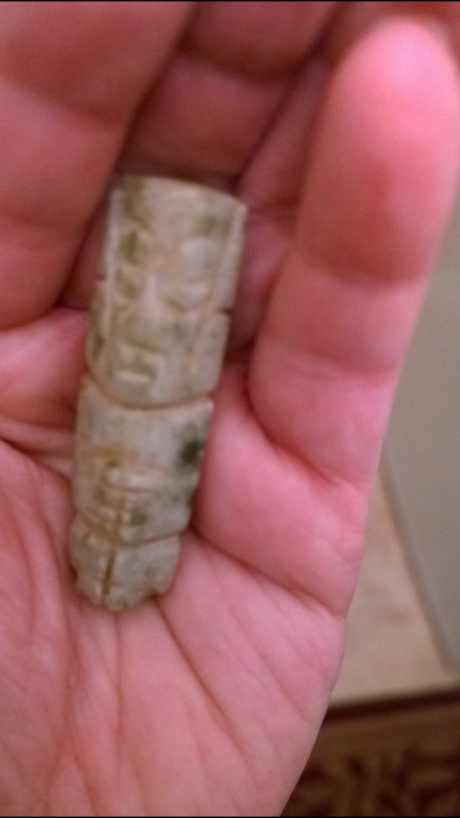 In the early 90’s someone, whom I have forgotten gave me a small carved figurine. He said he got it from a guy somewhere in Mexico who said it was a burial idol. I never knew if it was authentic or a replica nor did I know if it was good luck or bad luck – but I have kept it all these years.